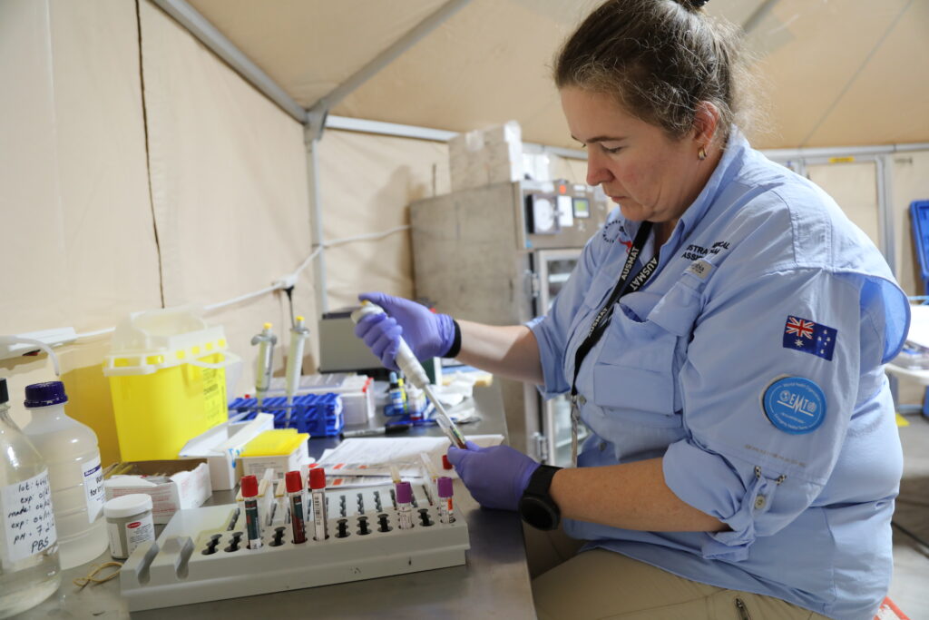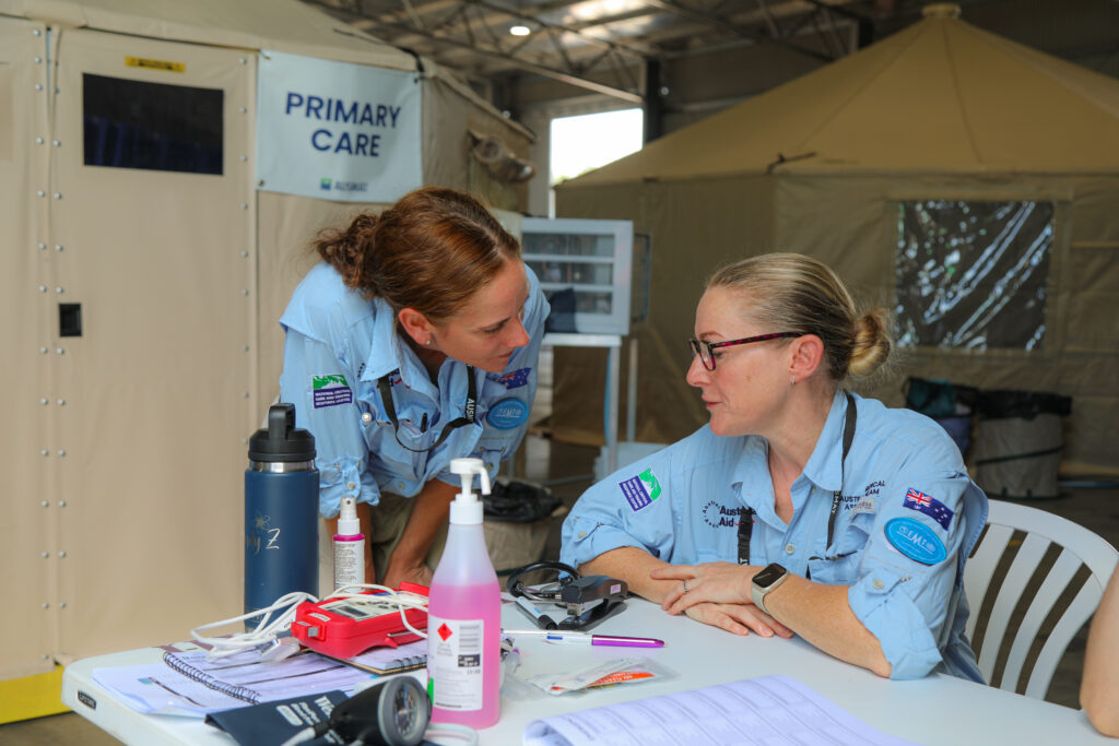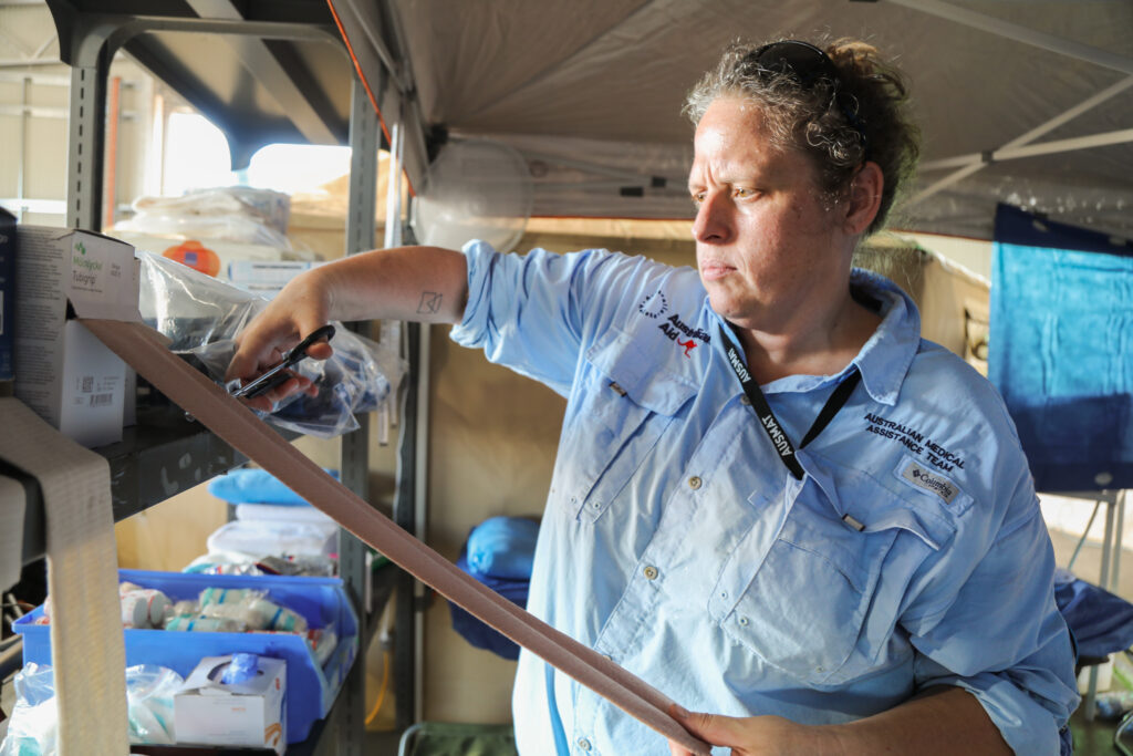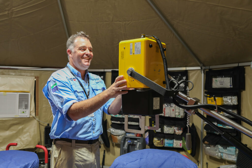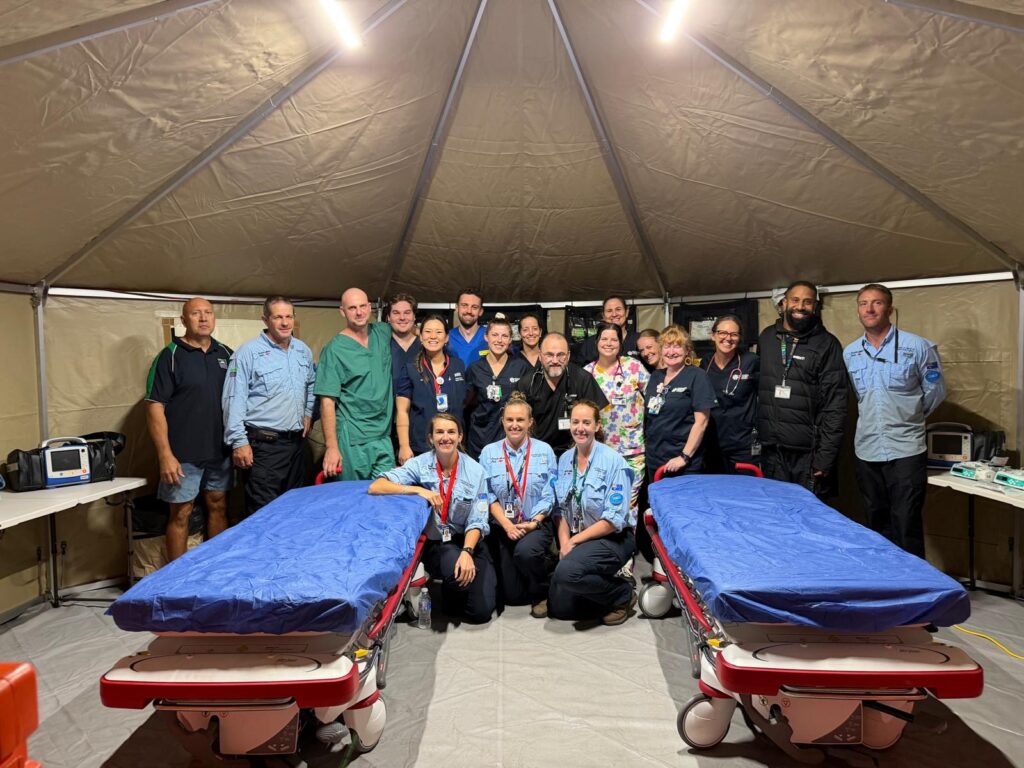 AUSMAT established an Emergency Medical Team (EMT) field hospital, delivering a broad range of clinical services including emergency care, inpatient support, maternity services, radiology and laboratory capability. Clinicians and support staff from Katherine District Hospital were embedded within the operation, supporting ongoing patient care throughout the disruption.